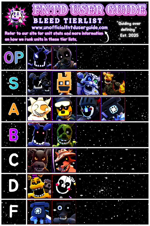 These units are similar to those in S tier but fall short due to either a less effective attack type or weaker bleed. Still usable, but not ideal.